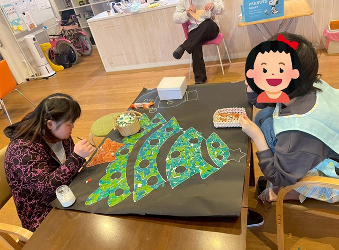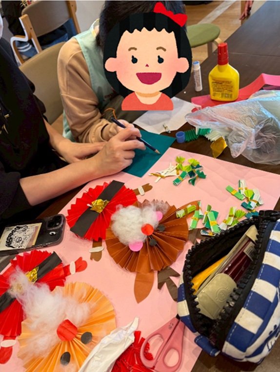 色紙をちぎって貼ったり、サンタさんやツリーを作ったりと、それぞれが思い思いに手を動かしながら制作を楽しみました。